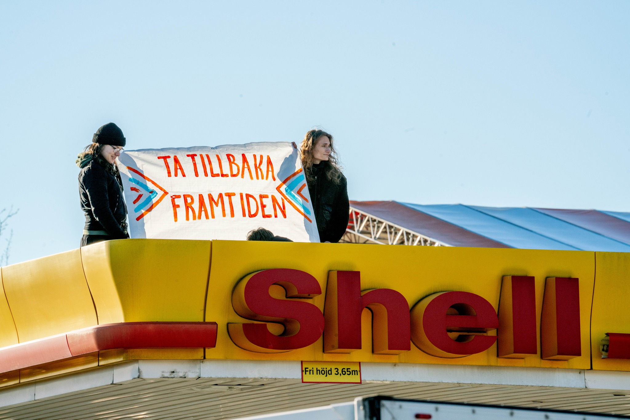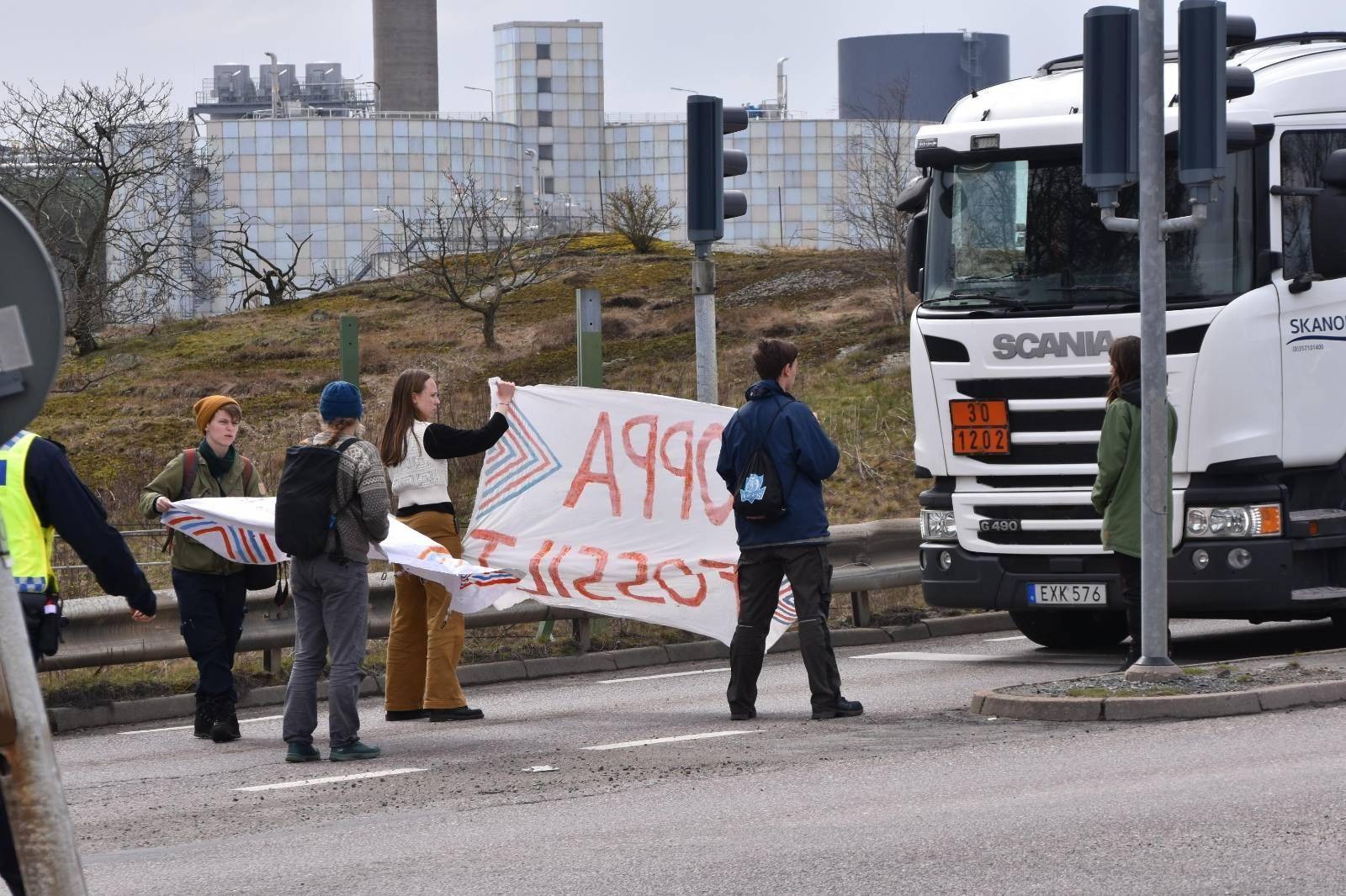 8 dagar mellan 1-14 april 2023 stoppade vi dag efter dag transport av fossila bränslen från Göteborgs oljehamn - där 50% av den råolja som kommer in i Sverige tas in - genom att sitta framför, och klättra upp på, tankbilar som var på väg till och från tankdepåer inne i hamnen.