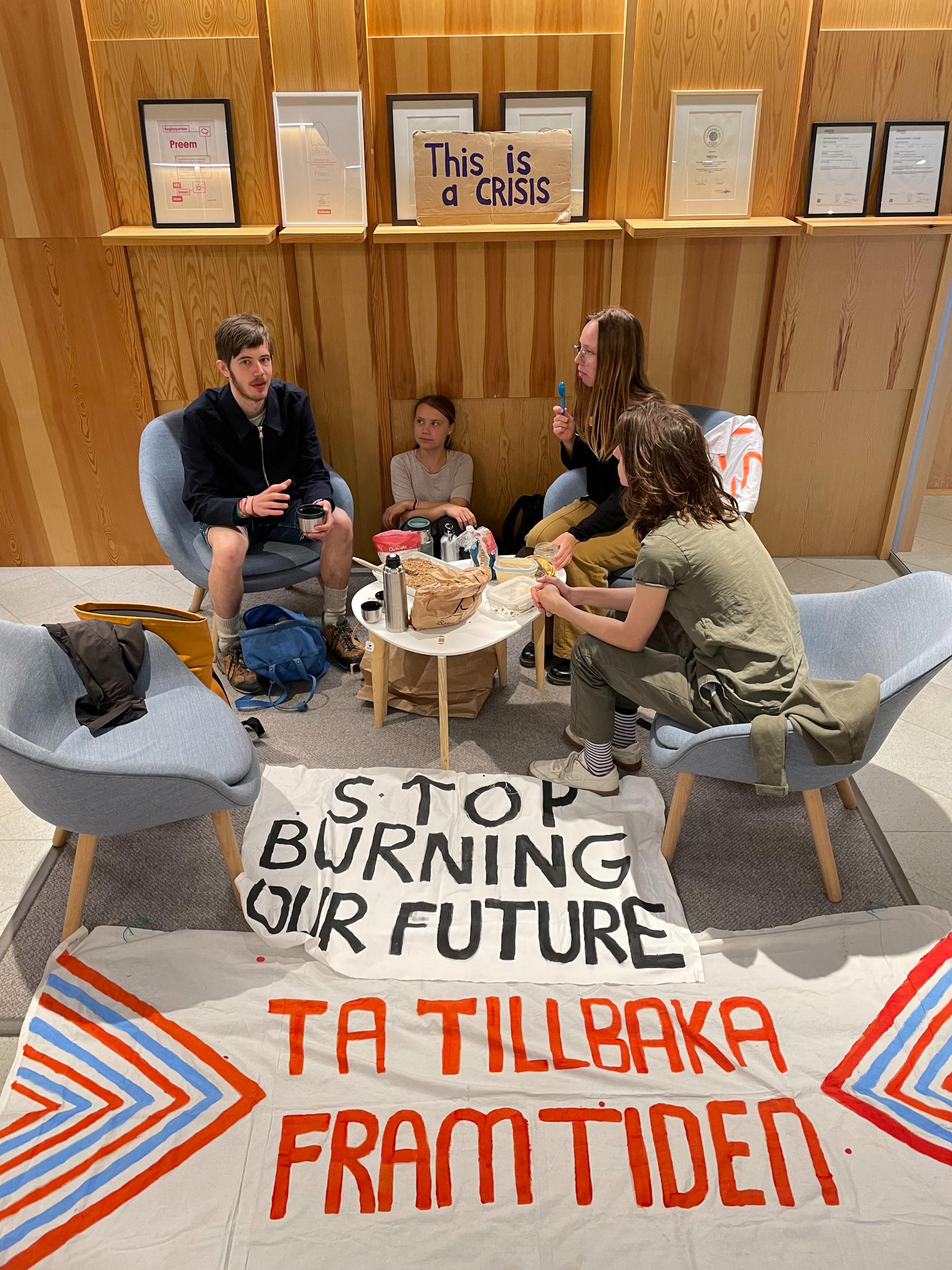 Vi har också ordnat fest och panelsamtal, oinbjudet ätit frukost hos fossilföretag och arrangerat klimatfestival med Jordens vänner och Färnebo folkhögskola.